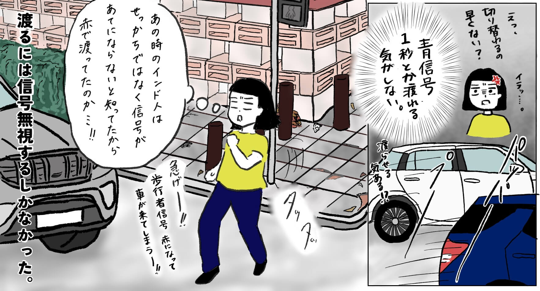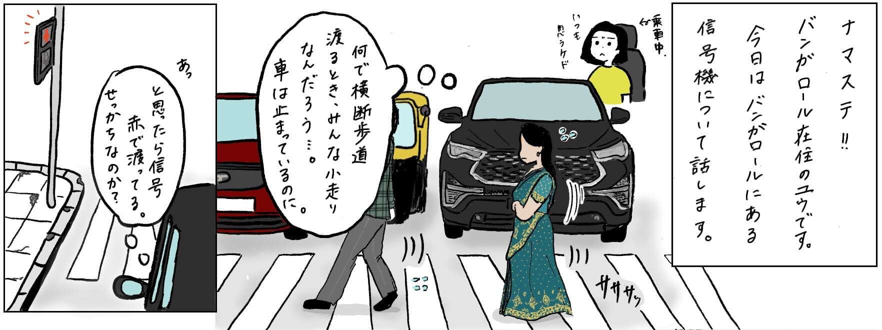 そして歩行者も歩行者用信号を信用していないので、信号が赤でも隙を見て普通に渡ります。